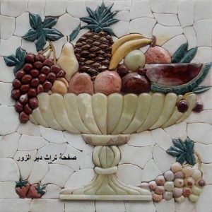 لوحات فنية مميزة بجمالها وحرفيتها من خلال ترصيعها بقطع الموزاييك والرخام،